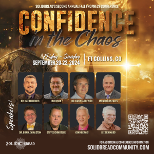 Solid Bread’s slogan is “Chew. Think. Grow.” As part of its efforts to provide thorough, timely, and in-depth teaching, Solid Bread occasionally produces events featuring well-known speakers. This September’s Fall prophecy conference, “Confidence in the Chaos,” is one of these events, and some basic information about this conference is included here.